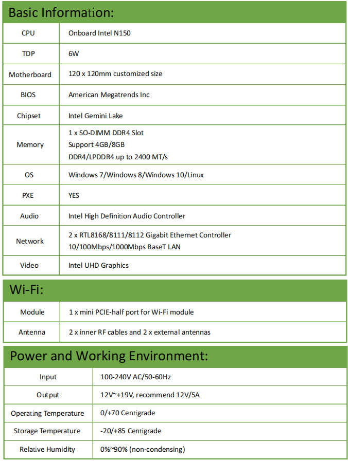 Eglobal Onboard N150 Up to 3.6GHz Fanless Mini PC 24Hours Dual Lan Dual COM DDR4 Small Computer Product highlight: