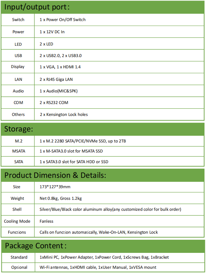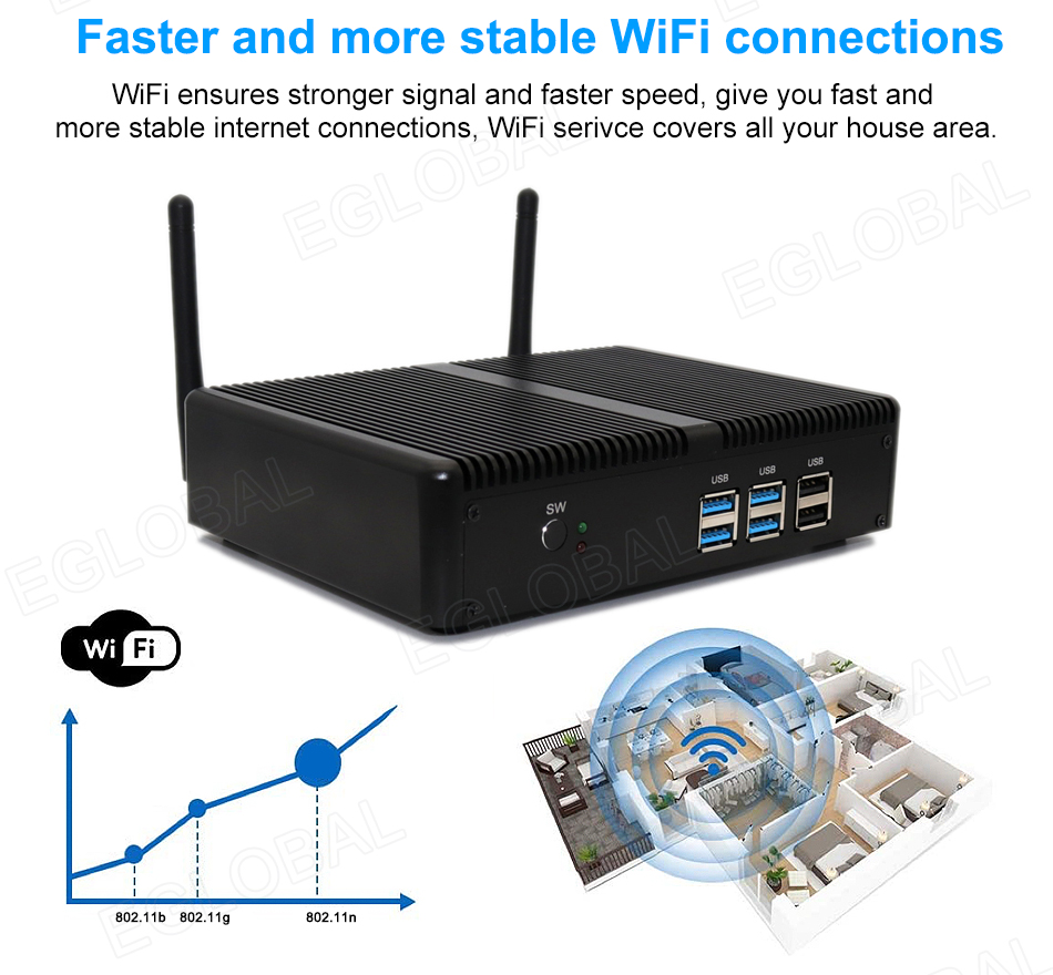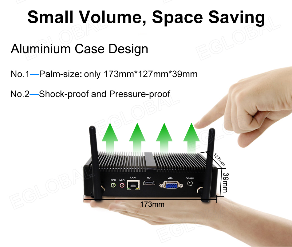 - Fanless system without cooling fan, no any noise, work as long as 24 hours.