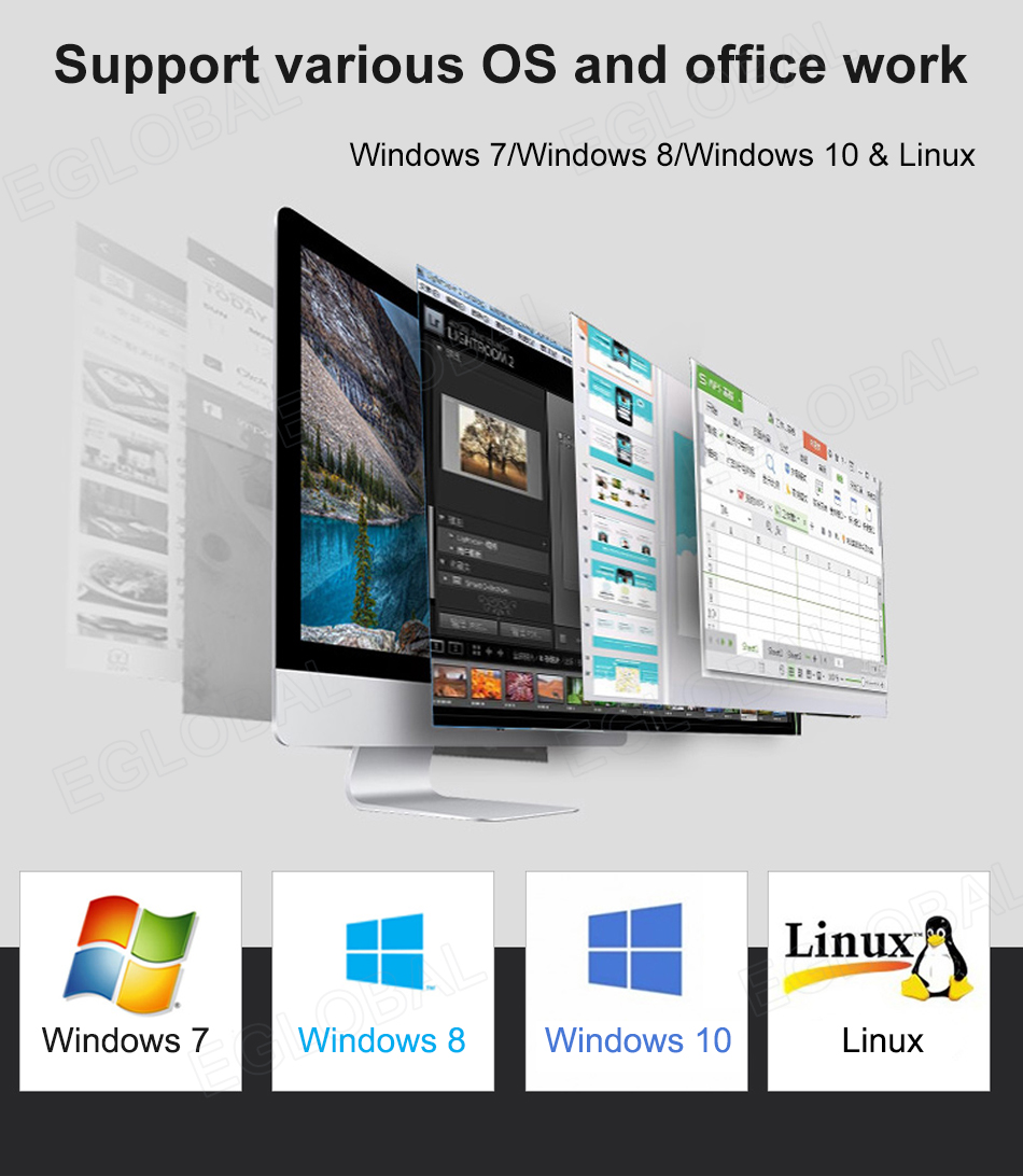- Support HDMI 1.4 and VGA dual display output synchronously.